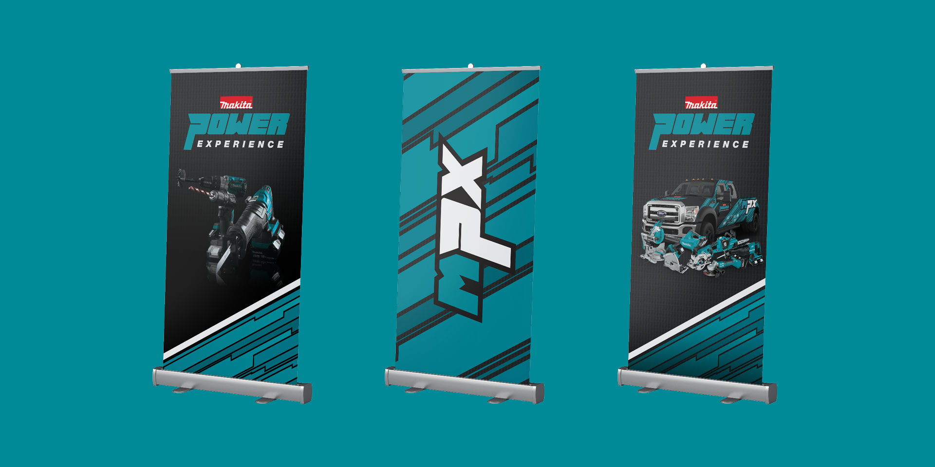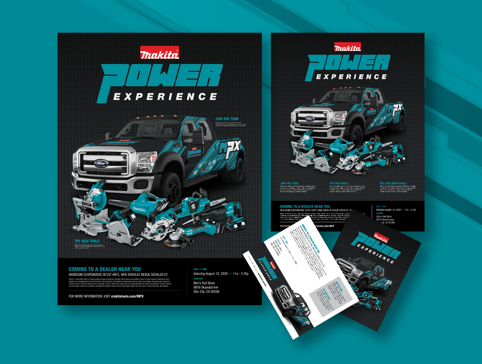 Look-and-feel proposal for Makita's upcoming mobile product showcase tour.